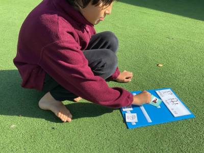 We have 10 children in our class, ranging from Year 3 to Year 6. Our classroom is sited across the playground and in a separate modular building; this means that we are very lucky with the space and have our own playground, two big classrooms and two smaller rooms.